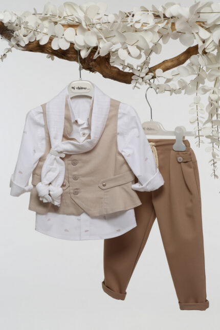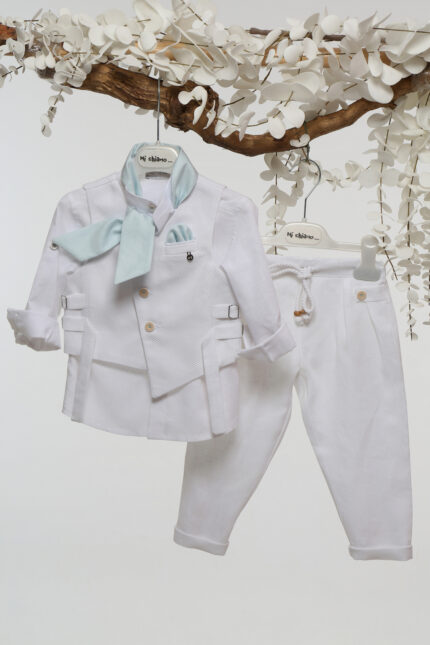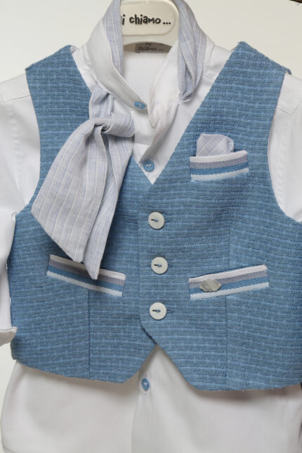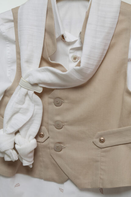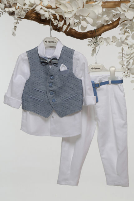 Καλοκαιρινό Βαπτιστικό με Γιλέκο και Λευκό Παντελόνι Α4773