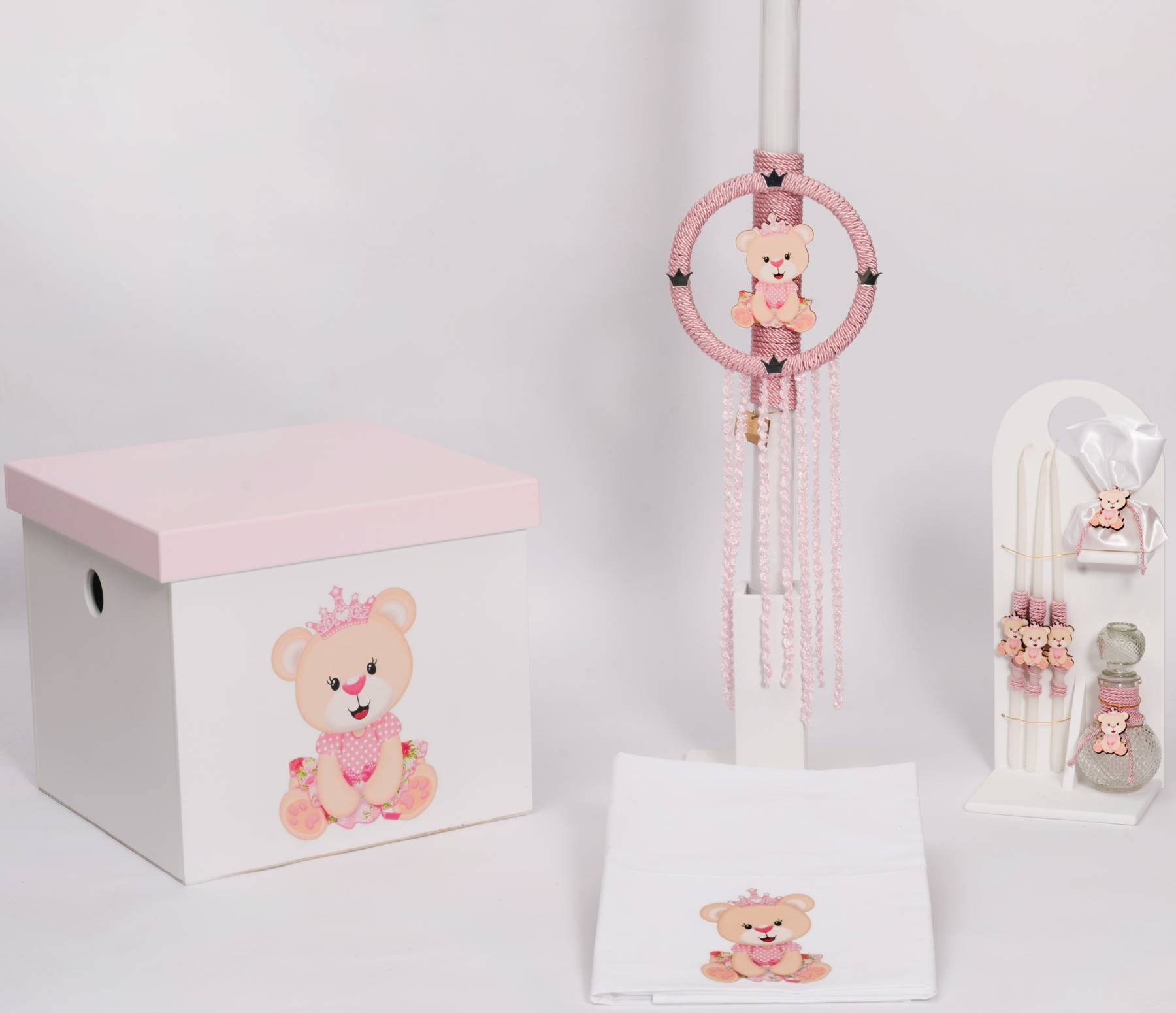 Σετ βάπτισης κορίτσι με θέμα Αρκουδάκι με Κορώνα.