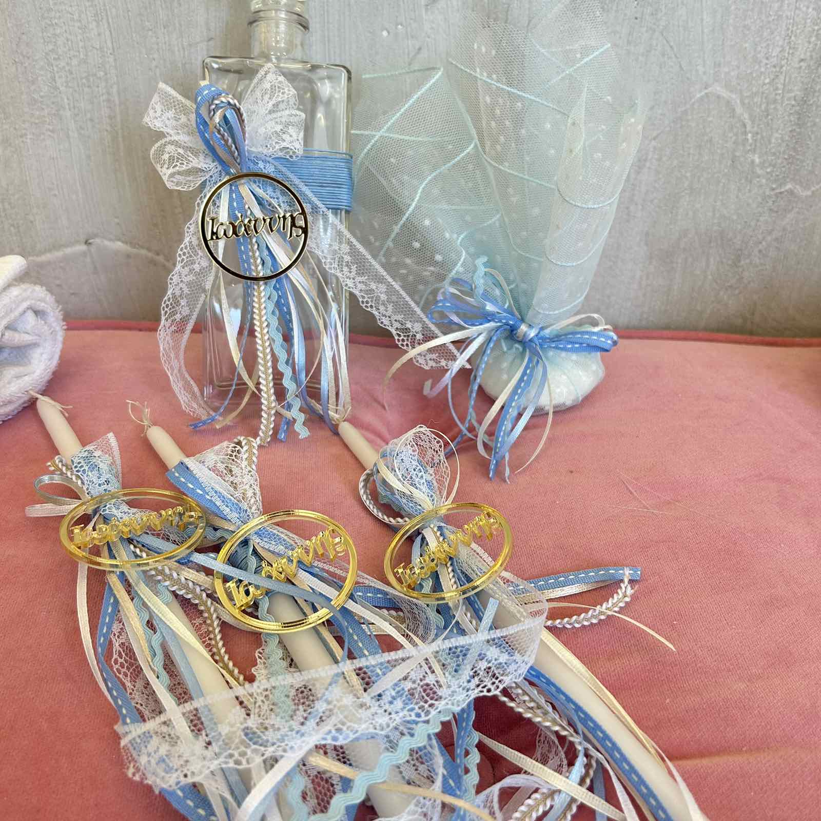 Καλωσόρισε τη βάπτιση του μικρού σου με ένα ξεχωριστό, ολοκληρωμένο και χειροποίητο βαπτιστικό πακέτο σιέλ, που συνδυάζει κομψότητα, ποιότητα και συναισθηματισμό. Δημιουργήσαμε κάθε στοιχείο με αγάπη και προσοχή στη λεπτομέρεια, ώστε να μεταμορφώσουμε αυτή τη μοναδική στιγμή σε μια αξέχαστη εμπειρία για εσάς και το παιδί σας.