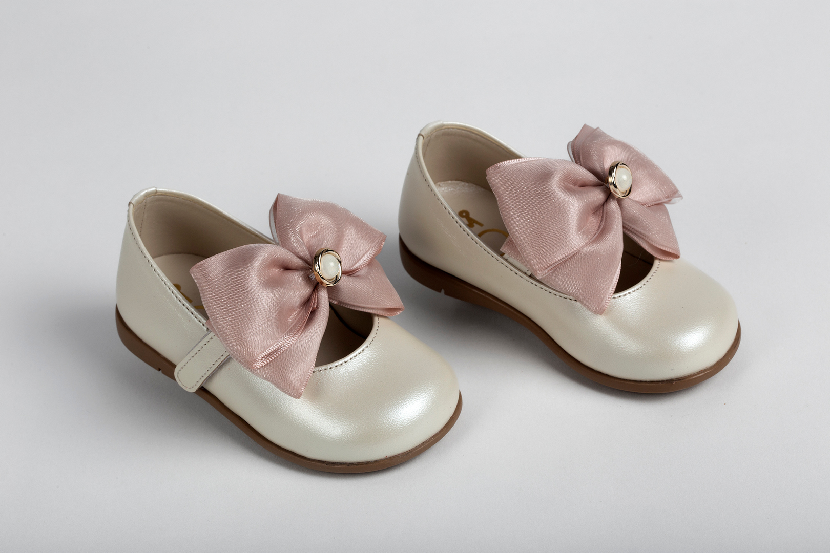 Εκρού Βαπτιστικά Παπούτσια “Φιόγκος Φωτός” everkid K571E