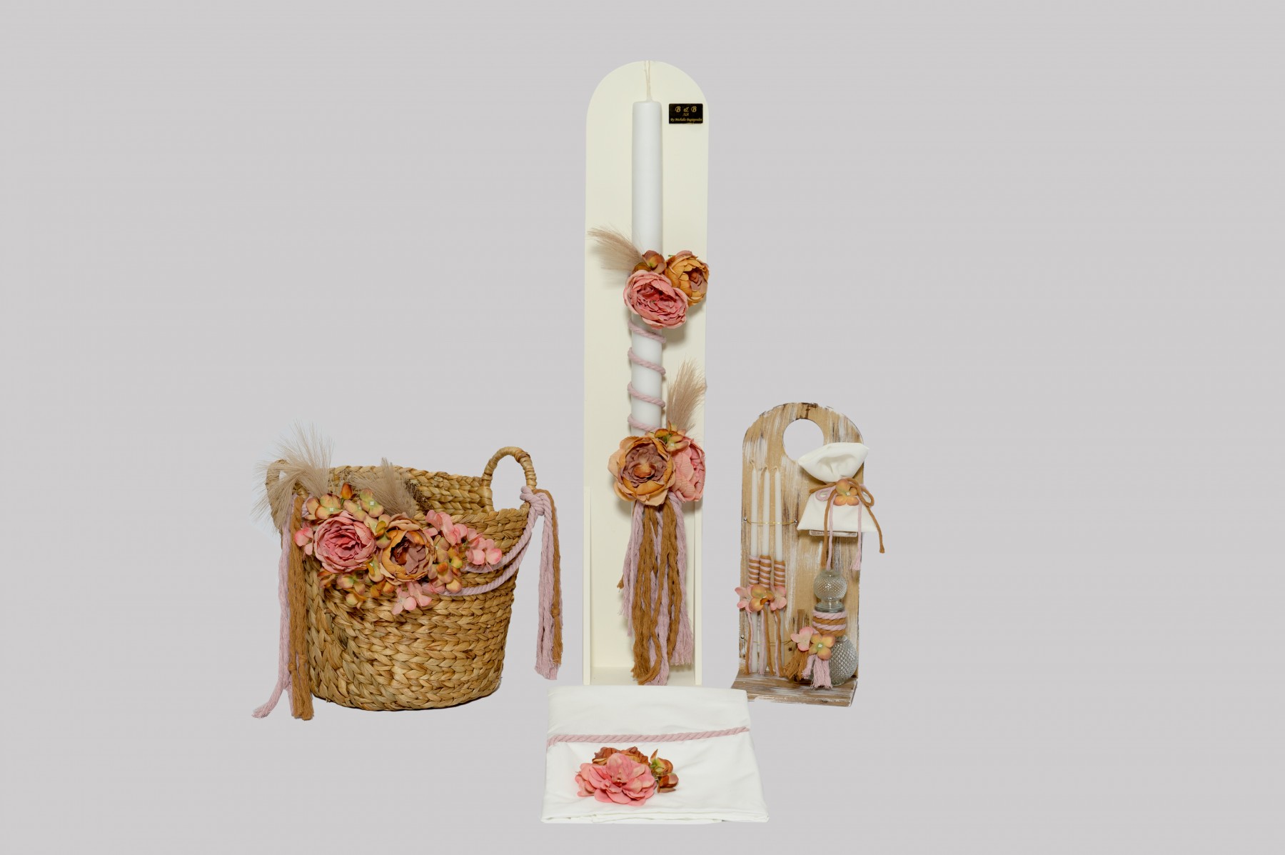Λαδοσέτ (ξύλινη βάση, κεράκια, σαπουνάκι, μπουκαλάκι λαδιού).