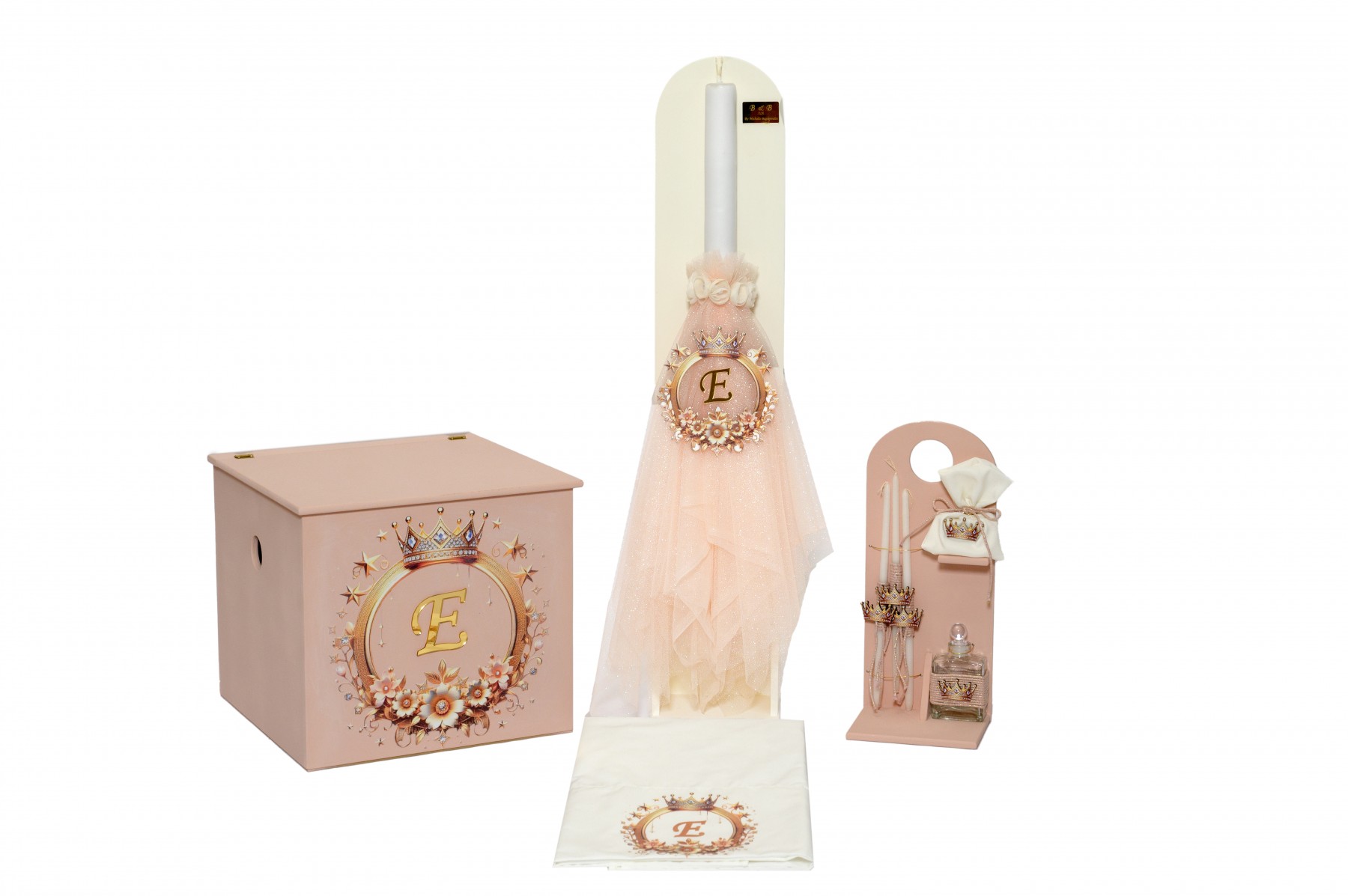 Σετ βάπτισης κορίτσι με θέμα Κορώνα με Μονόγραμμα.