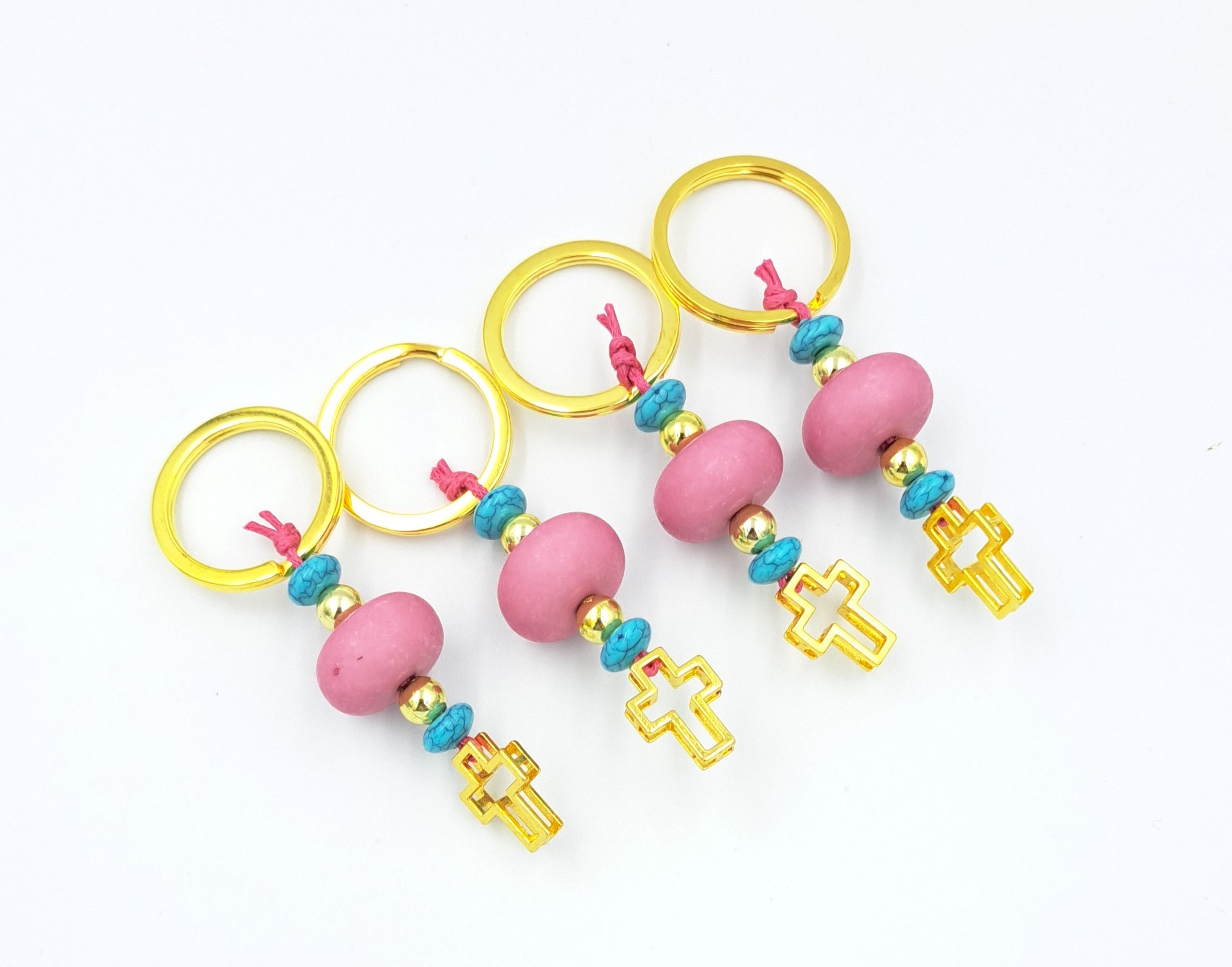 Μαρτυρικό μπρελόκ, λιλά χάντρα, ροδέλες γαλάζιες σταυρός χρυσό χρώμα. Οι φωτογραφίες έχουν υποστεί επεξεργασία και τα χρώματα ίσως να διαφέρουν λίγο στην πραγματικότητα. Η τιμή αφορά συσκευασία 50 τεμαχίων.
