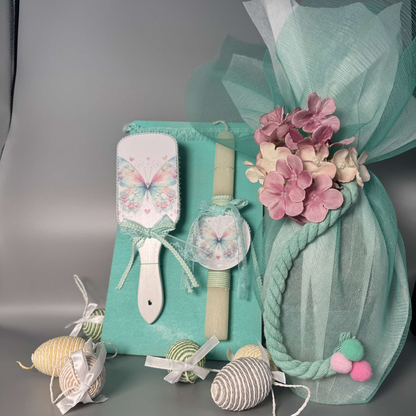 Πασχαλινή Λαμπάδα & Σετ Χτένα Μαλλιών “Πεταλούδα σε Τιρκουάζ”