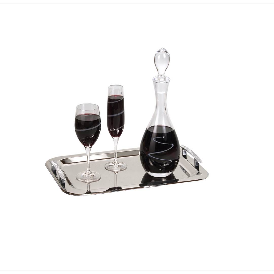 Ένα κομψό σετ κουμπάρου που περιλαμβάνει έναν εντυπωσιακό δίσκο, μια κρυστάλλινη καράφα και ένα εκλεπτυσμένο ποτήρι. Ιδανικό για να προσθέσει μια πινελιά πολυτέλειας στον γάμο σας.