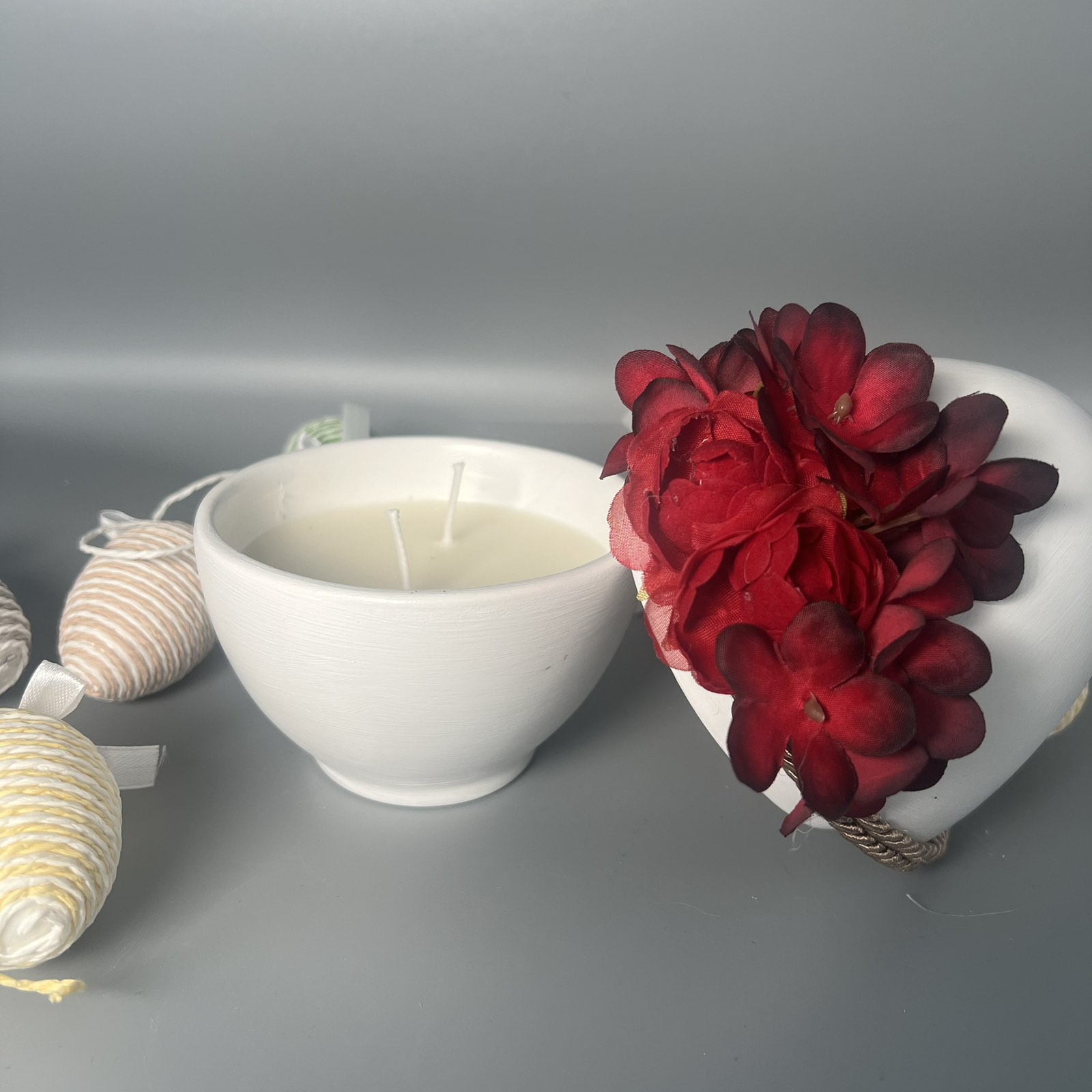 Χειροποίητο Αρωματικό Κερί “Πασχαλινό Αυγό με Κόκκινα Λουλούδια” (Διακοσμητικό & Επιλογή Προσθήκης)