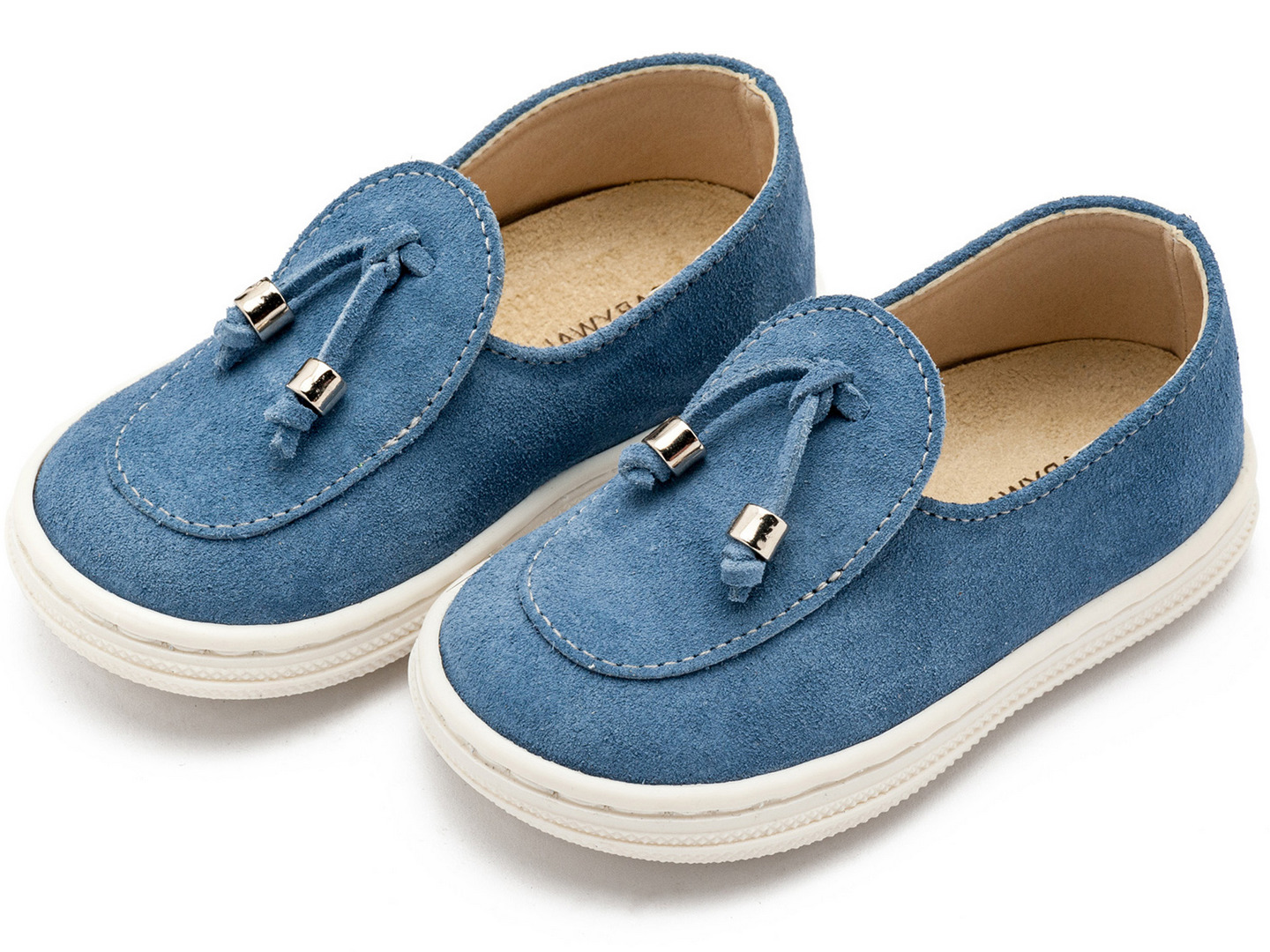 Αυτό το κομψό ζευγάρι παιδικά μοκασίνια σε γαλάζιο χρώμα είναι η ιδανική επιλογή για μικρούς κυρίους που θέλουν να ξεχωρίζουν με στυλ. Κατασκευασμένα από μαλακό σουέτ υλικό, προσφέρουν άνεση και ευελιξία σε κάθε βήμα. Στο πάνω μέρος διαθέτουν μια διακοσμητική λεπτομέρεια με κορδόνια και μεταλλικές άκρες, που προσθέτει μια πινελιά κομψότητας. Η λευκή σόλα από καουτσούκ εξασφαλίζει ανθεκτικότητα και σταθερότητα στο περπάτημα. Κατάλληλα για επίσημες και casual εμφανίσεις, αυτά τα παπούτσια είναι ιδανικά για ιδιαίτερες περιστάσεις ή καθημερινή χρήση.
