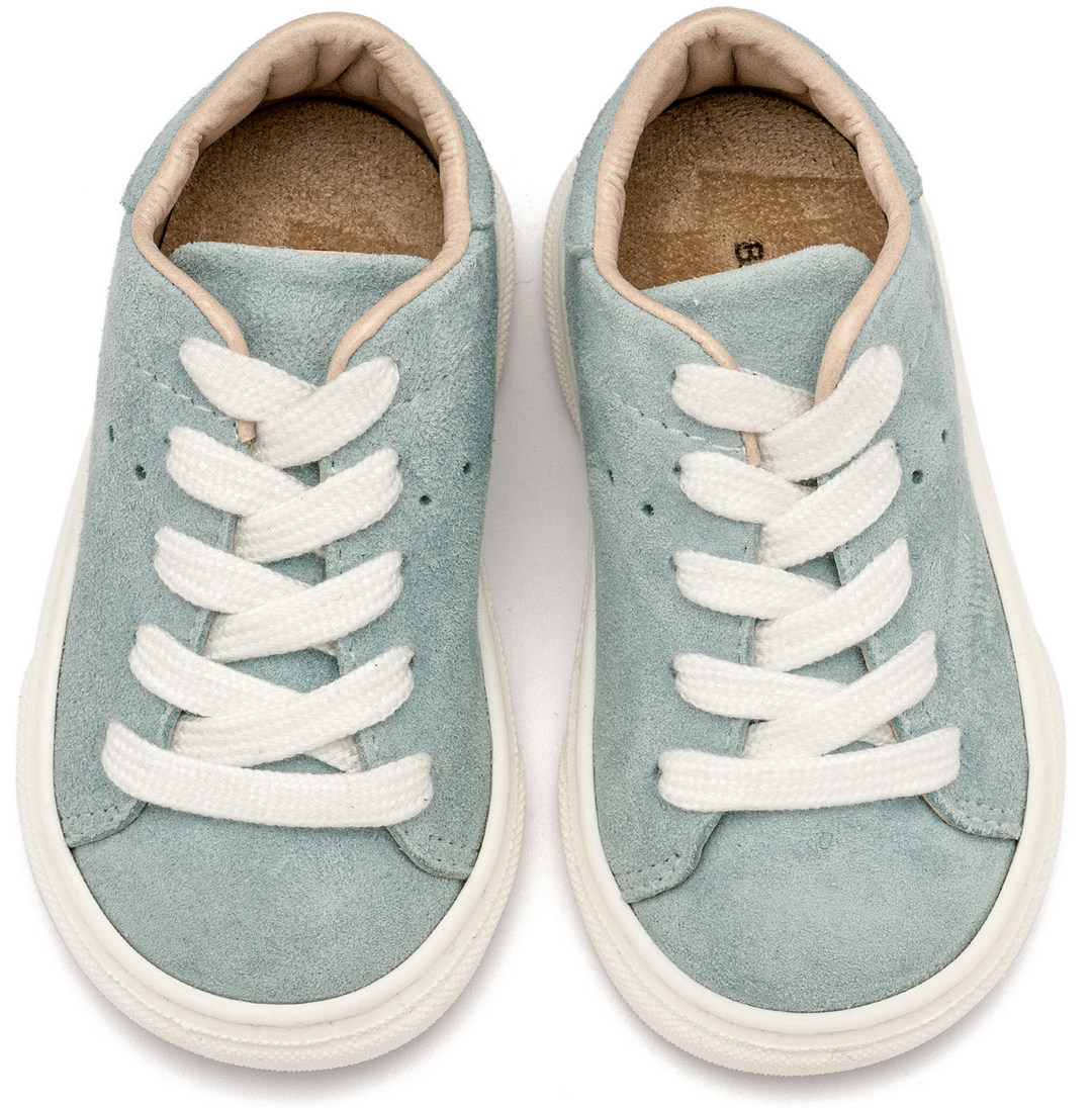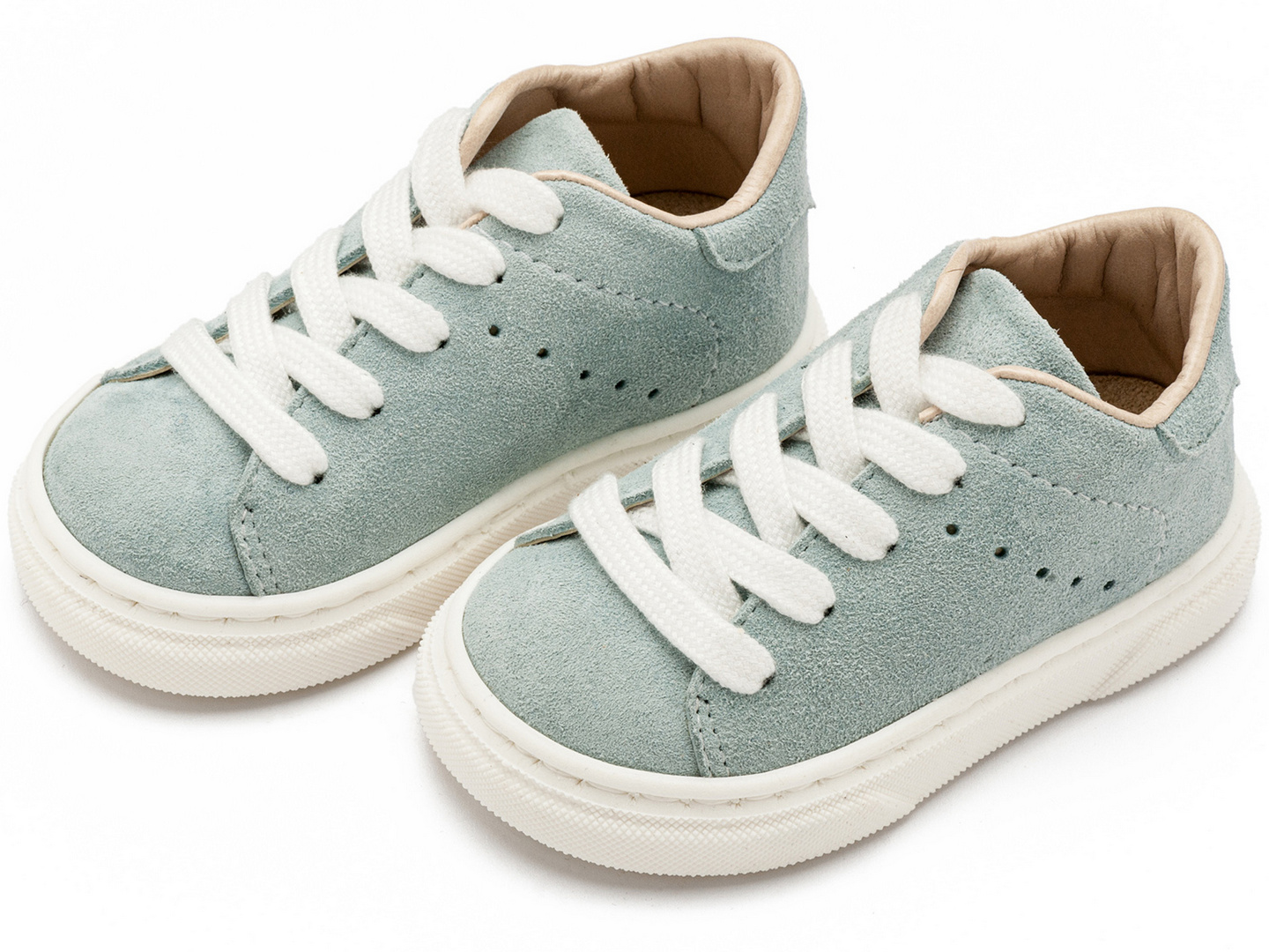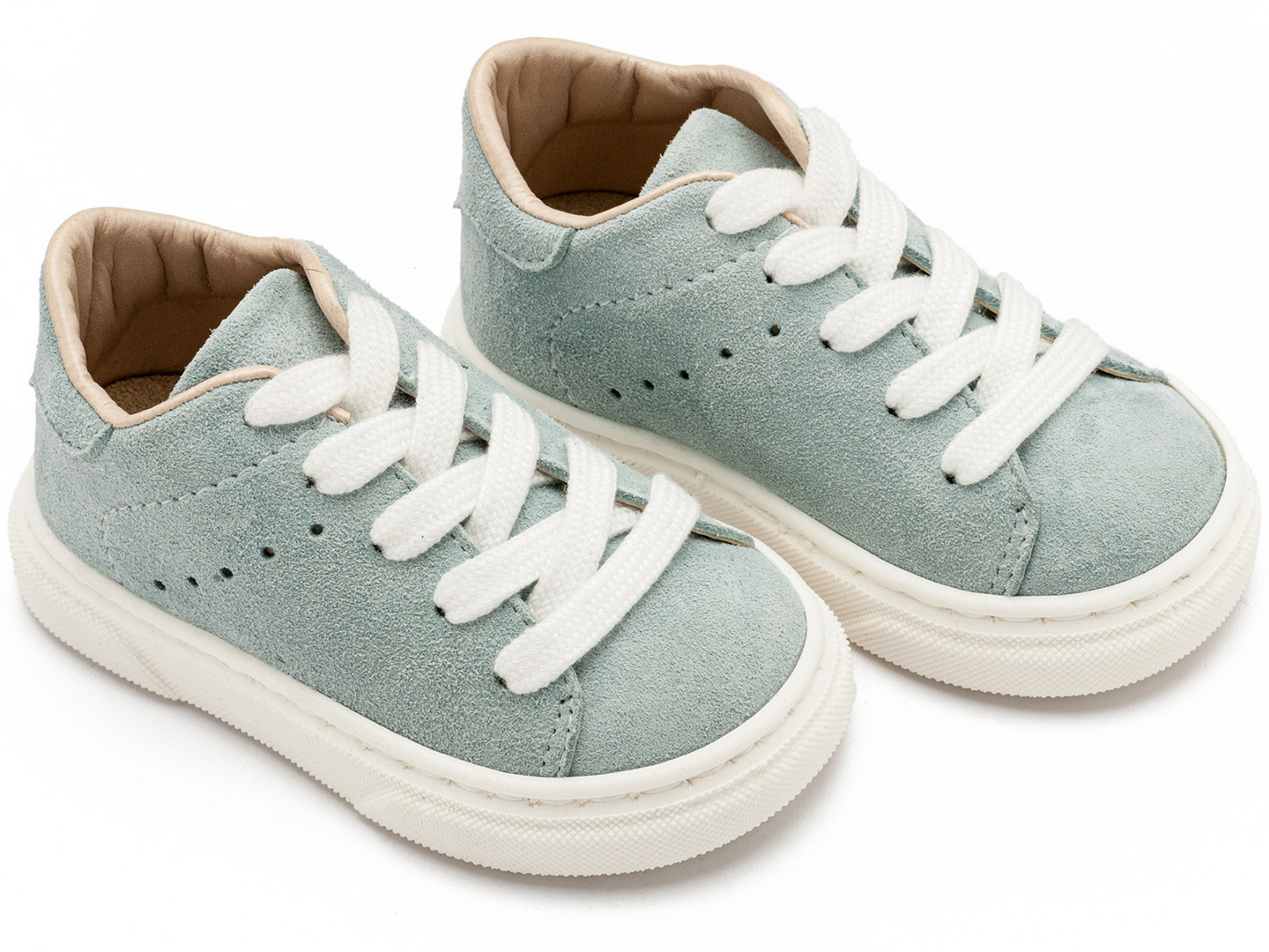 Παιδικά sneakers σε μέντα χρώμα, κατασκευασμένα από σουέντ, με λευκή σόλα και κορδόνια. Άνετα, κομψά και ιδανικά για καθημερινή χρήση.