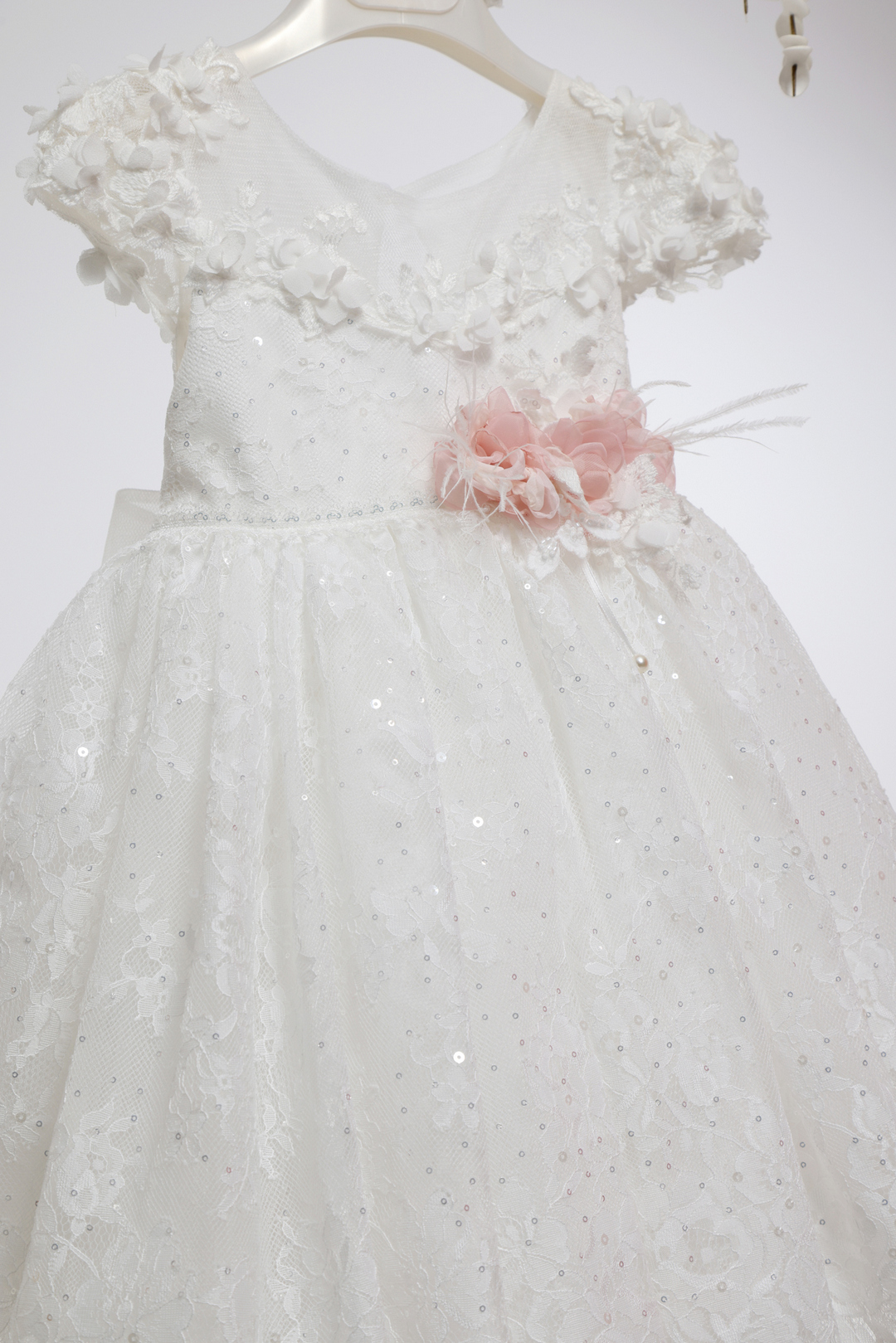 Βαπτιστικό Φόρεμα με Δαντέλα και Κομψές Ροζ Λεπτομέρειες ΜΚ Κ76