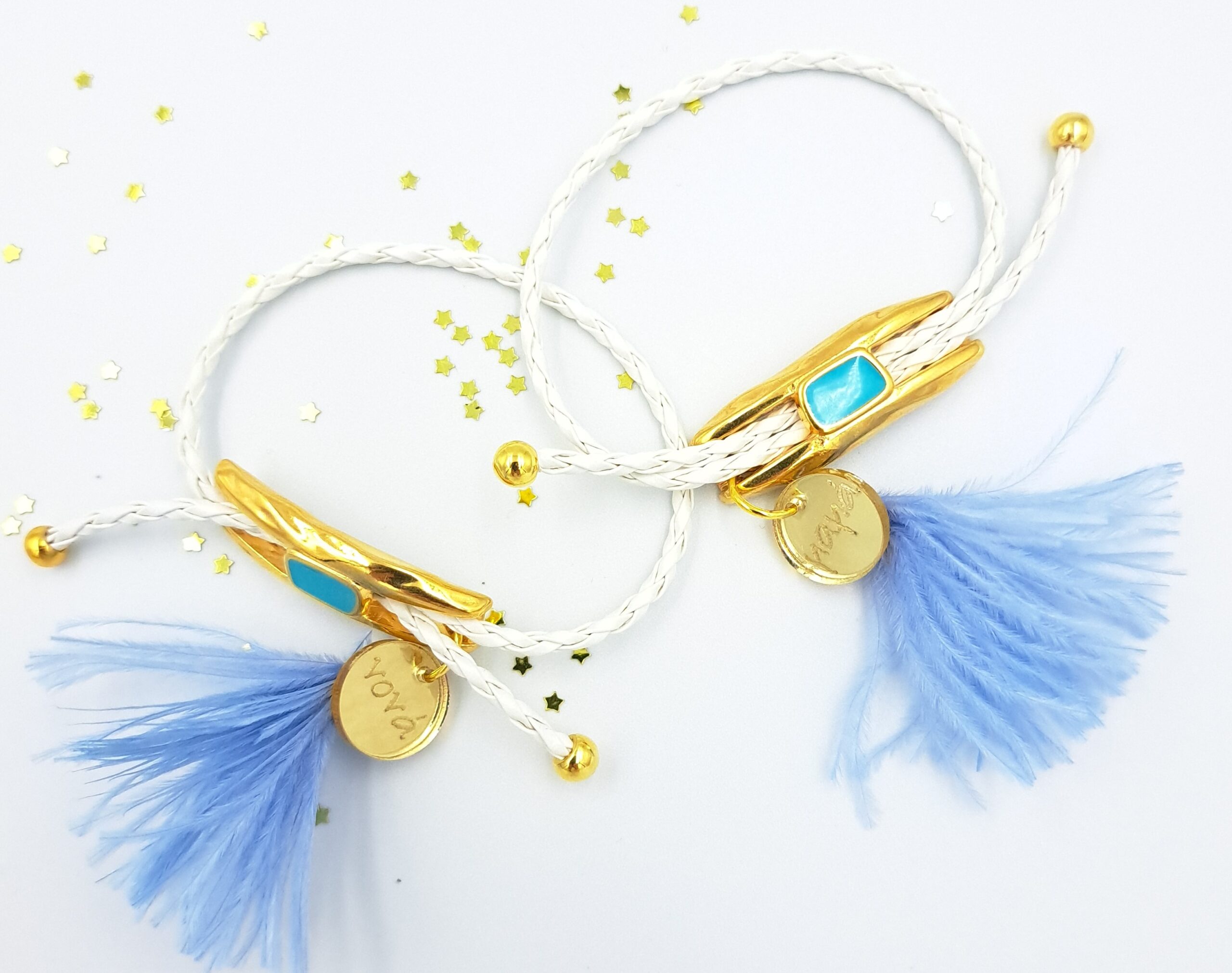 Βραχιόλι, λευκό, μεταλλικό στοιχείο με σμάλτο γαλάζιο, φτερό γαλάζιο, για την μαμά, την νονά, την θεία, την αδερφή και την γιαγιά. Οι φωτογραφίες έχουν υποστεί επεξεργασία και τα χρώματα ίσως να διαφέρουν λίγο στην πραγματικότητα. Η Τιμή αφορά συσκευασία 2 τεμαχίων.
