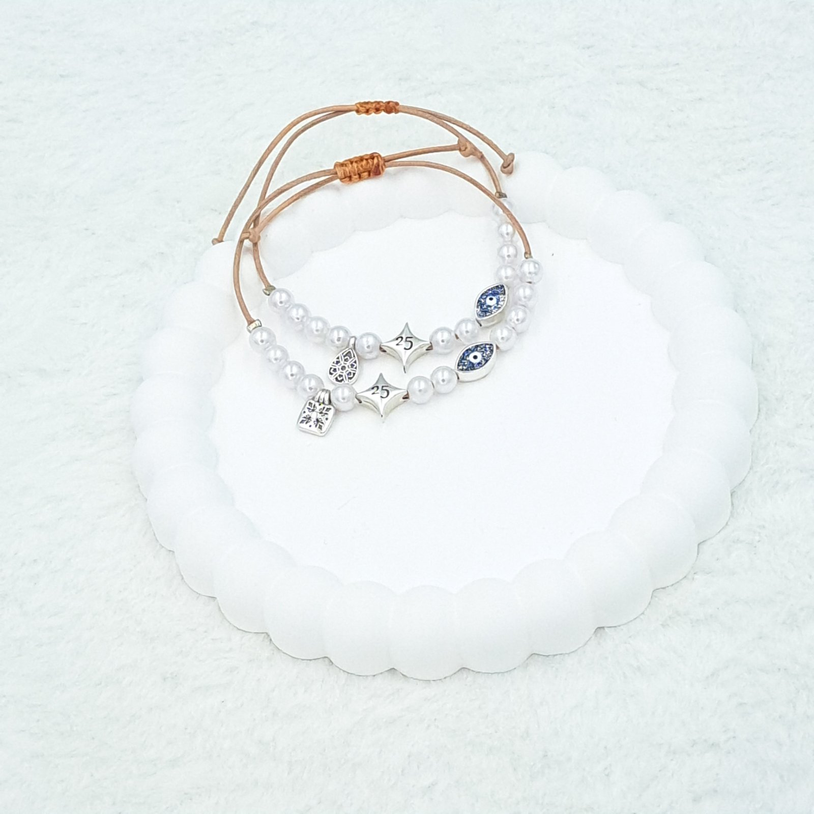 Βραχιόλι χρυσό μοτίφ, λευκή χάντρα – CC265-0