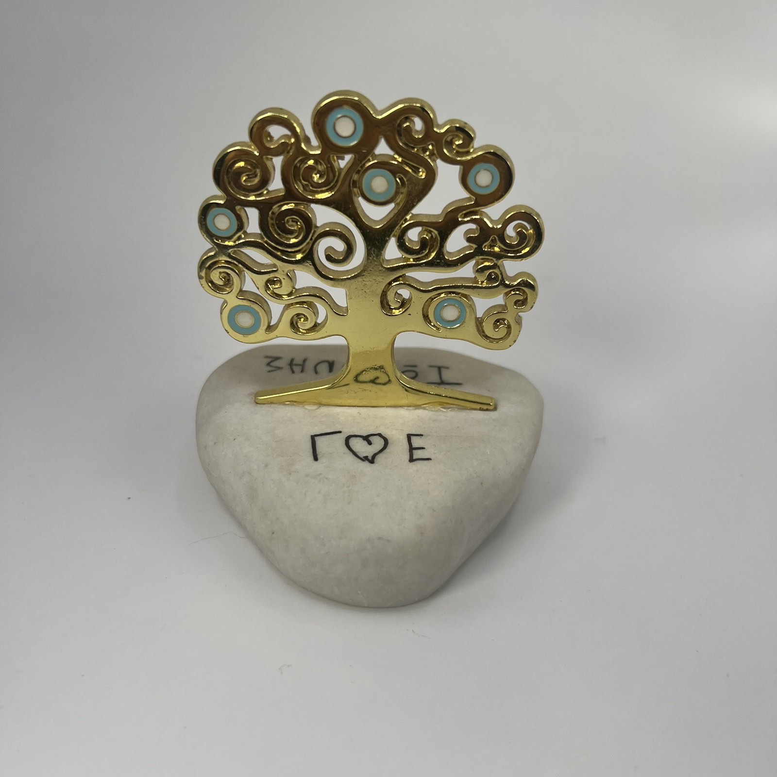 - Αυτή η μπομπονιέρα βάπτισης δεν είναι απλώς ένα δώρο, είναι μια ευλογία που χαρίζεται από καρδιάς. Το Δέντρο της Ζωής, σκαλισμένο με λεπτομέρεια σε μια λευκή, λεία πέτρα, συμβολίζει την ανάπτυξη, την οικογένεια και την αιώνια αγάπη. Η χρυσή μεταλλική απεικόνιση του δέντρου, με τις μικρές μπλε πινελιές που προσθέτουν μια νότα χρώματος, δημιουργεί ένα εντυπωσιακό οπτικό αποτέλεσμα.