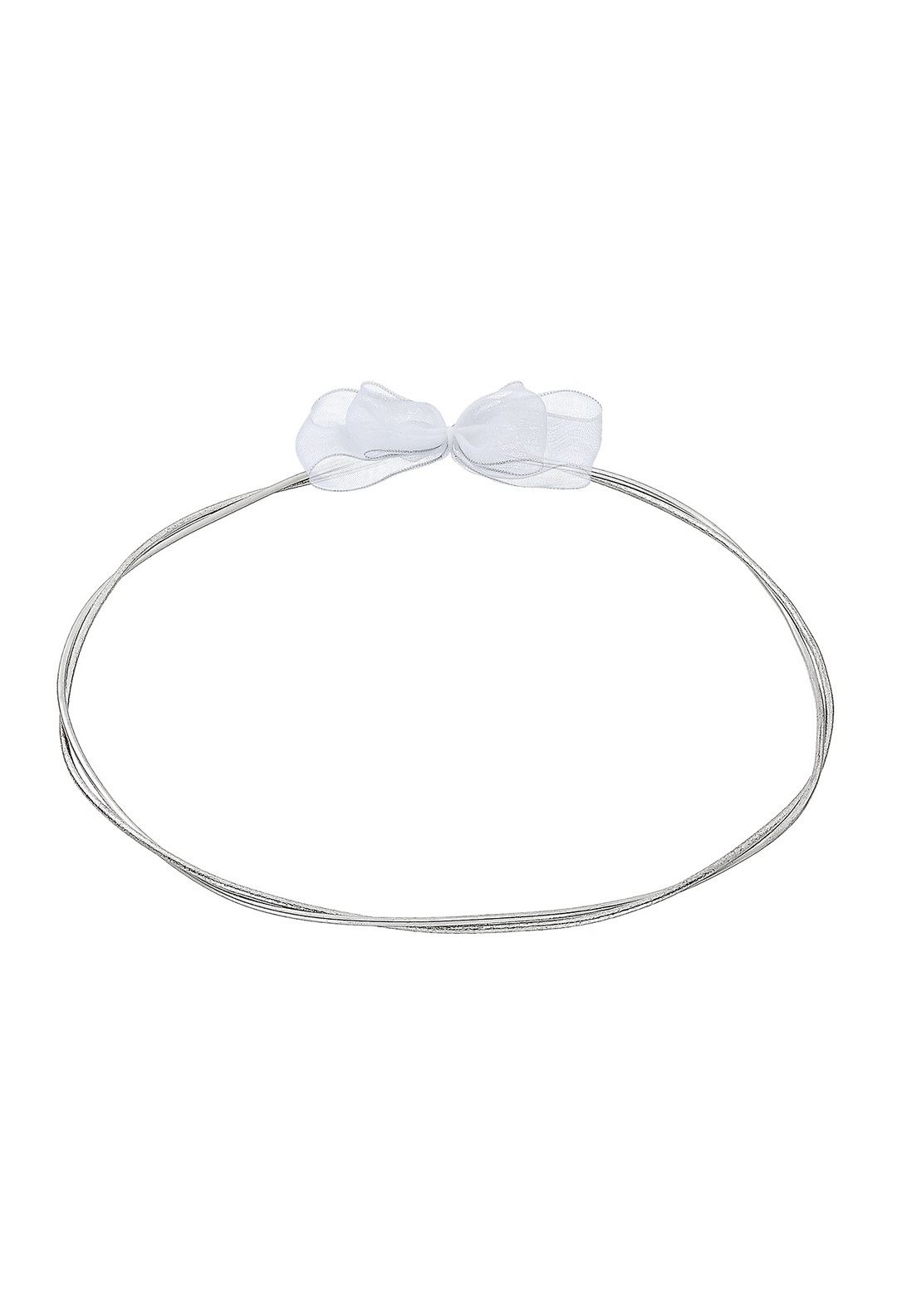 Λεπτεπίλεπτα επάργυρα στέφανα γάμου από λεπτά ασημένια σύρματα με λευκό φιόγκο οργάντζα. Αέρινη κομψότητα για την ξεχωριστή σας ημέρα.