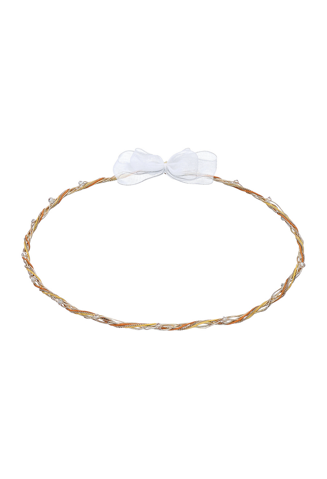 Χειροποίητα επάργυρα στέφανα γάμου με λεπτεπίλεπτο σχέδιο, στολισμένα με διακριτικά στρασάκια και δεμένα με λευκή σατέν κορδέλα.