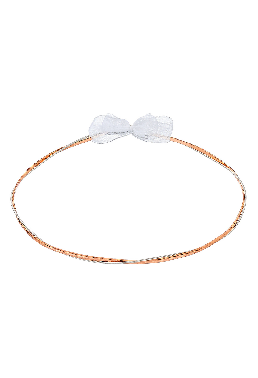 Αυτά τα μοναδικά επάργυρα στέφανα γάμου αποτελούν την τέλεια επιλογή για ένα ζευγάρι που αναζητά διακριτική πολυτέλεια και διαχρονική κομψότητα. Ο συνδυασμός του επάργυρου μετάλλου με τις σφυρήλατες λεπτομέρειες σε ροζ χρυσό δημιουργεί μια αίσθηση ρομαντισμού και κομψότητας, ενώ ο λευκός φιόγκος από αέρινη οργάντζα ενισχύει την αίσθηση καθαρότητας και ένωσης. Ένα σύμβολο αγάπης και αφοσίωσης που θα συνοδεύσει το ζευγάρι στη νέα τους ζωή με λάμψη και χάρη.