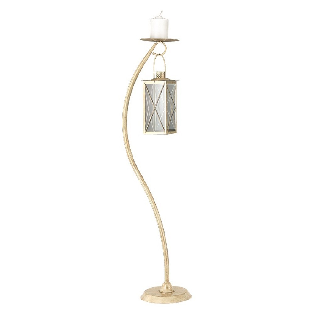 Αυτός ο εντυπωσιακός κηροστάτης συνδυάζει τη φινέτσα με τη λειτουργικότητα, δημιουργώντας ένα ζεστό και ατμοσφαιρικό αποτέλεσμα. Ο ιδιαίτερος καμπυλωτός σχεδιασμός του αποπνέει κομψότητα, ενώ το κρεμαστό φανάρι με τις γυάλινες λεπτομέρειες προσθέτει μια vintage πινελιά. Το επάνω μέρος διαθέτει θέση για κερί, ενισχύοντας τη ρομαντική ατμόσφαιρα. Ιδανικός για στολισμό γάμου σε εκκλησία ή δεξίωση, προσφέρει διαχρονική κομψότητα και μοναδική αισθητική.