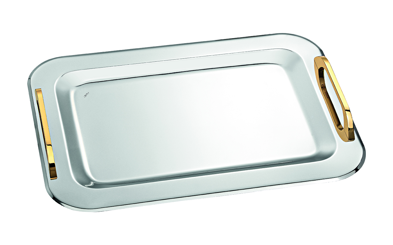 Ορθογώνιος δίσκος γάμου από ανοξείδωτο ατσάλι με κομψές χρυσές λαβές, που συνδυάζει πολυτέλεια και διαχρονική φινέτσα.