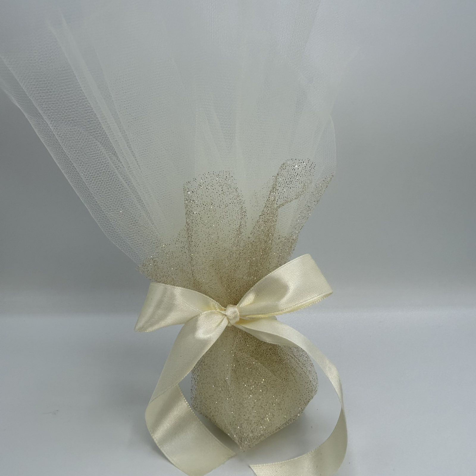 Η συγκεκριμένη μπομπονιέρα είναι ιδανική για γάμους και βαπτίσεις με διακριτική πολυτέλεια και ρομαντική αισθητική, ταιριάζοντας υπέροχα με στολισμούς σε χρυσούς, λευκούς ή ιβουάρ τόνους. Το παιχνίδι της διαφάνειας του τούλι και η λάμψη του γκλίτερ δημιουργούν ένα εντυπωσιακό αποτέλεσμα, προσφέροντας στους καλεσμένους ένα κομψό και αξέχαστο αναμνηστικό.
