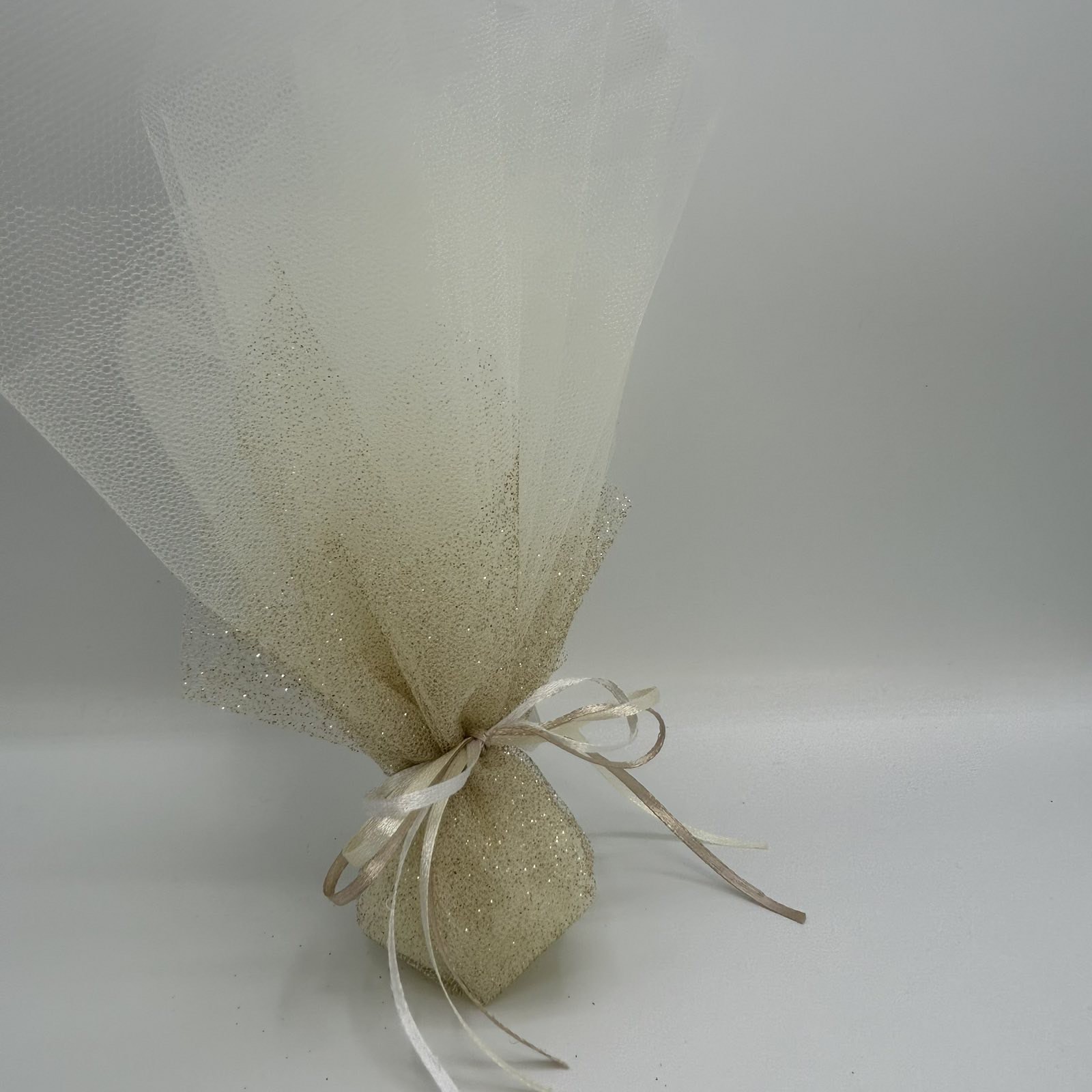 Μπομπονιέρα γάμου elegant με διπλό τούλι οργάτζα και επίπλεον τούλι
