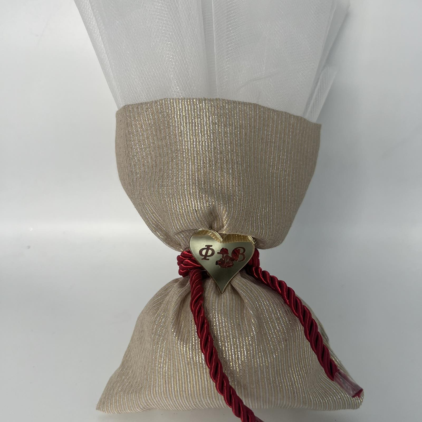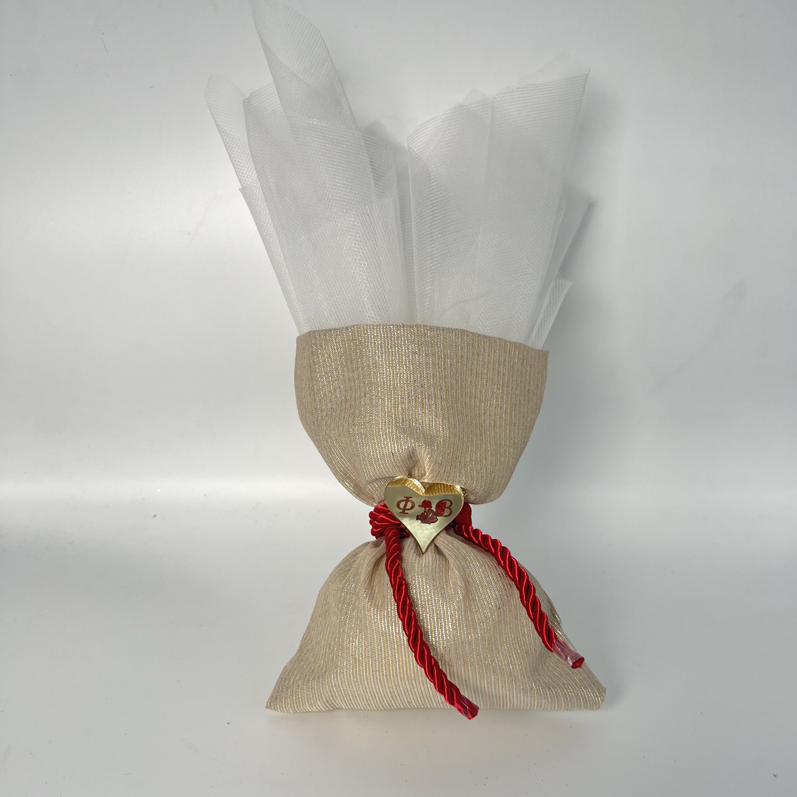 Αυτή η μπομπονιέρα αποπνέει μια αίσθηση ρουστίκ κομψότητας και ρομαντισμού, ιδανική για γάμους, βαπτίσεις ή άλλες σημαντικές περιστάσεις. Το πουγκί από λινάτσα, με την φυσική του υφή, προσθέτει μια ρουστίκ πινελιά. Το αέρινο τούλι, τυλίγοντας τα κουφέτα, δημιουργεί ένα ανάλαφρο και ρομαντικό αποτέλεσμα. Η καρδιά με τα αρχικά “ΦΕ”, δεμένη με κόκκινο κορδόνι, προσθέτει μια προσωπική πινελιά και μια νότα χρώματος. Η φυσική απόχρωση της λινάτσας, σε συνδυασμό με το λευκό του τούλι και το κόκκινο της καρδιάς, δημιουργούν μια αρμονική και κομψή σύνθεση. Η μπομπονιέρα αυτή δεν είναι απλώς ένα δώρο, αλλά ένα ρουστίκ και ρομαντικό ενθύμιο που θα θυμίζει στους καλεσμένους σας την ξεχωριστή σας στιγμή.