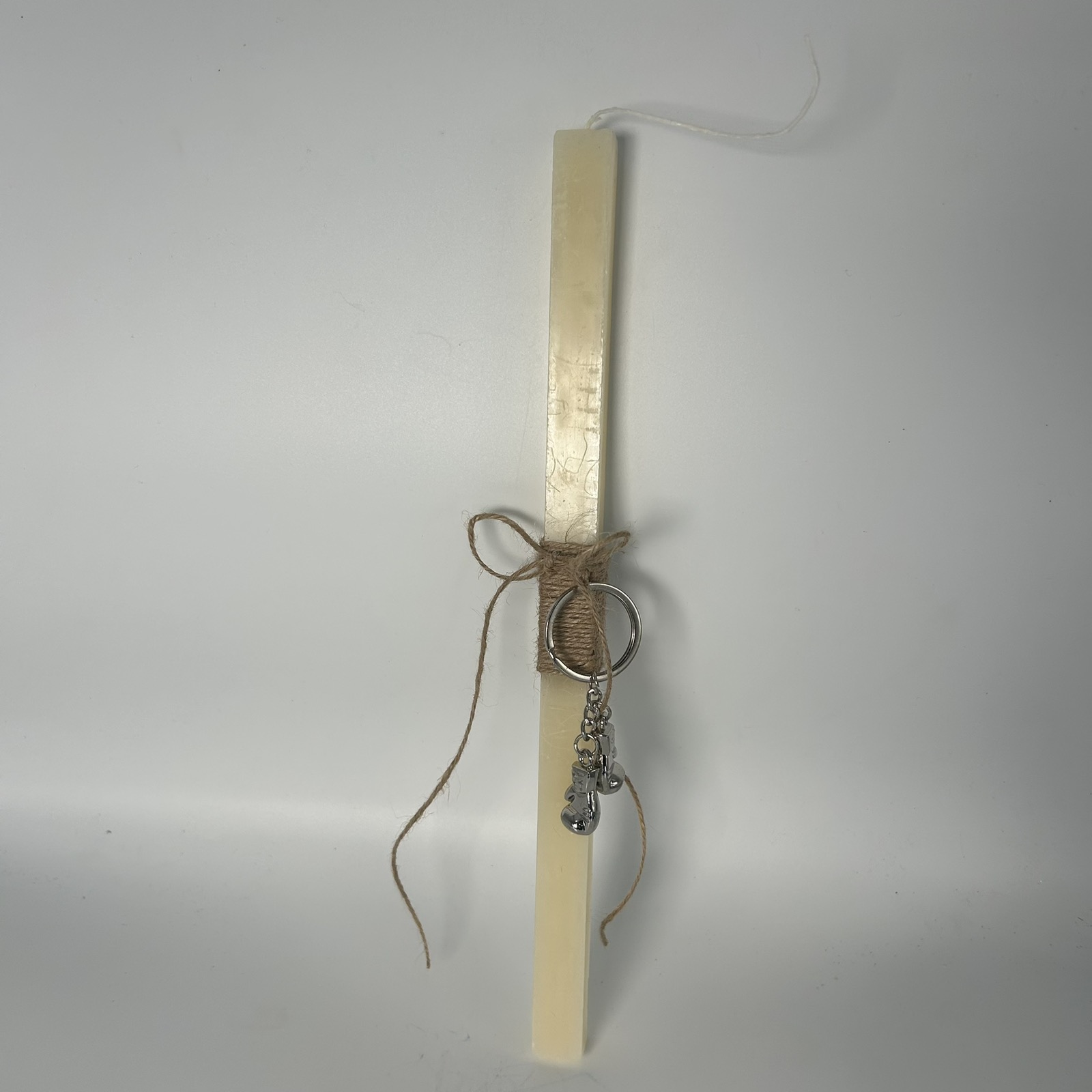 Μια κομψή, minimal πασχαλινή λαμπάδα σε φυσική απόχρωση, διακοσμημένη με σπάγγο δεμένο σε φιόγκο και ένα μεταλλικό μπρελόκ. Η απλότητα και η φυσικότητα της σύνθεσης την καθιστούν ιδανική για όσους αγαπούν τις διαχρονικές και διακριτικές επιλογές. ✨