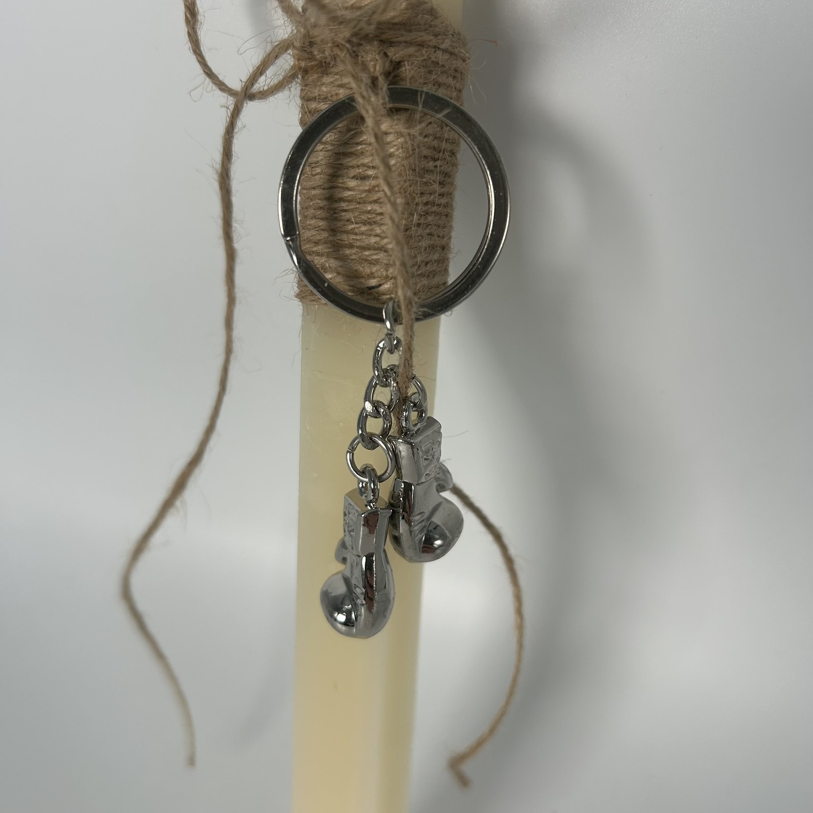 Πασχαλινή λαμπάδα για αγόρι μπρελόκ γάντια του box Χειροποίητη