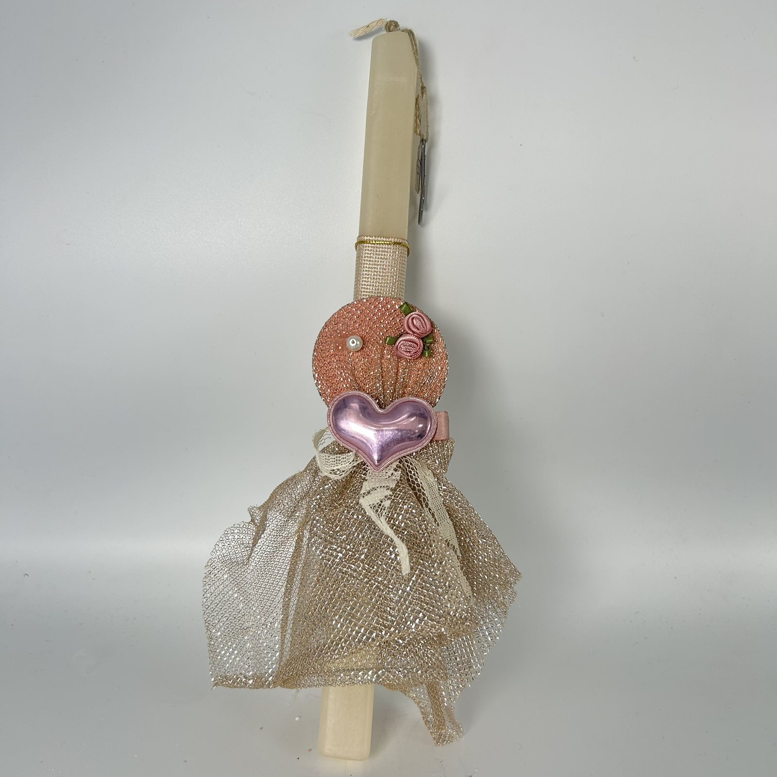 Αυτή η πασχαλινή λαμπάδα είναι μια ρομαντική και γλυκιά δημιουργία, ιδανική για ένα κορίτσι ή μια γυναίκα που αγαπά τα ρομαντικά σχέδια και τις λεπτομέρειες.