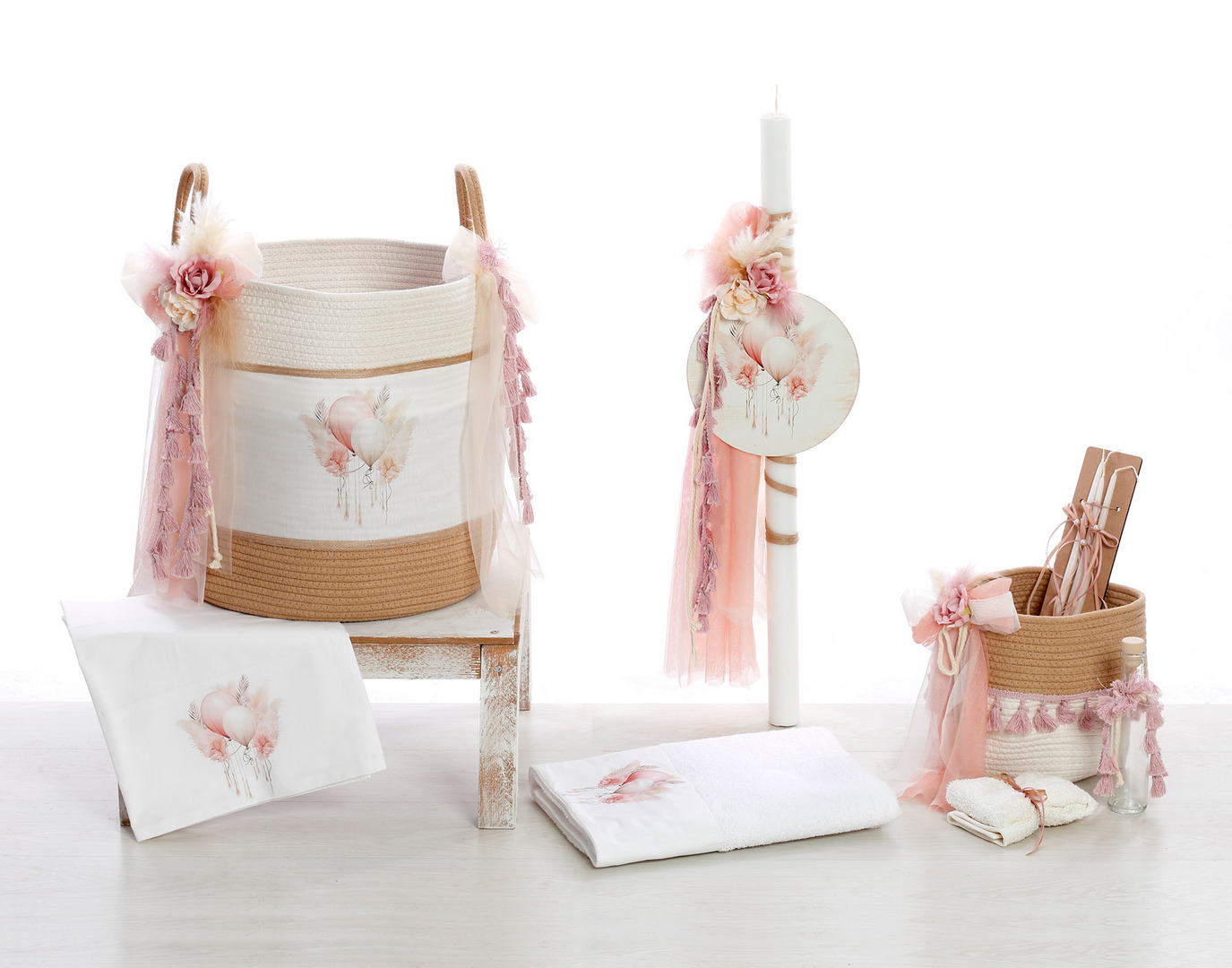 “Τρυφερή Τουλίπα: Βαπτιστικό Σετ με Ψάθινο Καλάθι” ΣΔΣ 2535 BELLIS