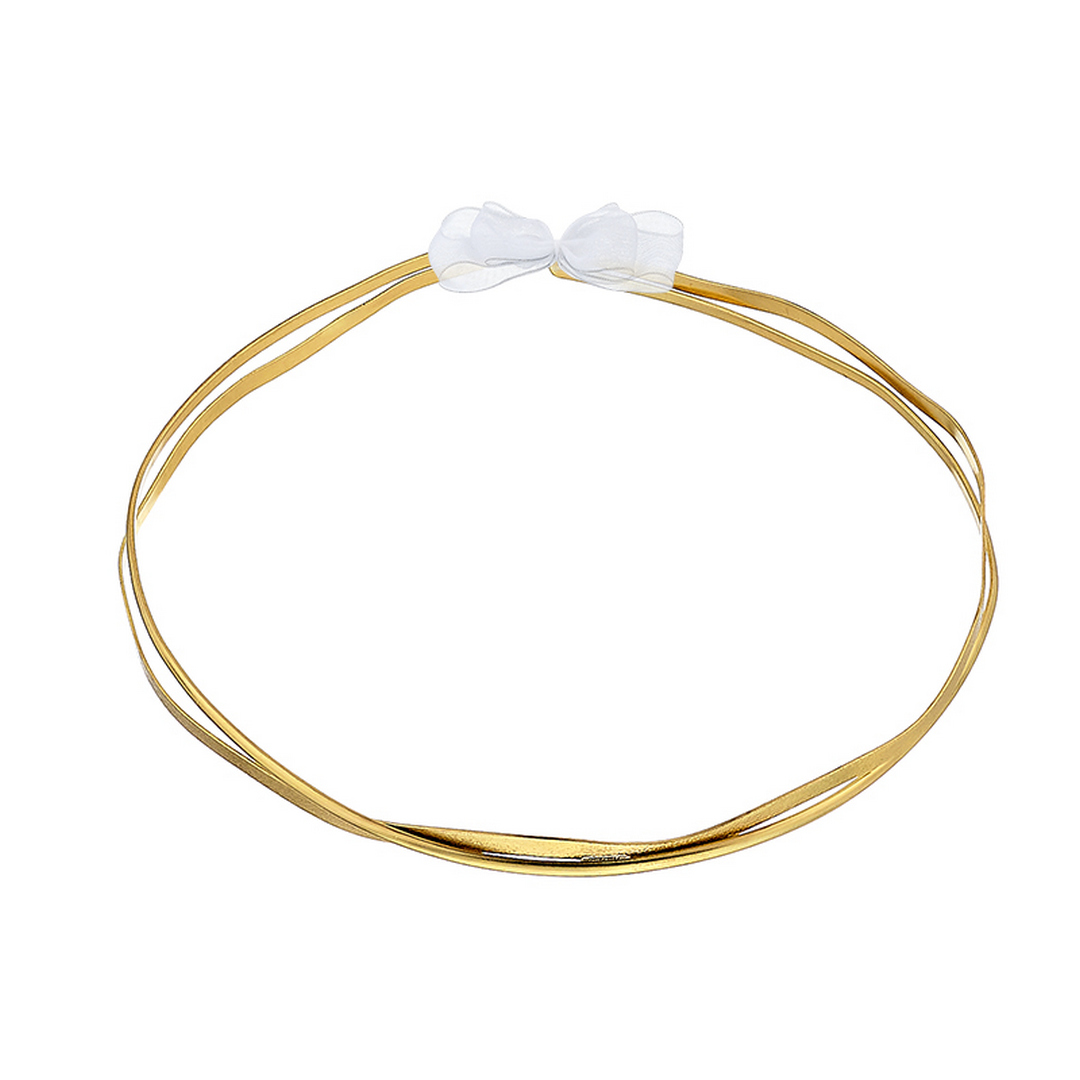 Αυτά τα εξαιρετικά χειροποίητα στέφανα γάμου αποτελούν σύμβολο αγάπης και ενότητας. Είναι κατασκευασμένα από λεπτές, επιχρυσωμένες μεταλλικές λωρίδες, που αγκαλιάζουν αρμονικά η μία την άλλη, δημιουργώντας μια κομψή και διαχρονική εμφάνιση. Η διακριτική τους λάμψη προσθέτει φινέτσα, ενώ ο λευκός τούλινος φιόγκος που τα ενώνει ενισχύει το ρομαντικό στοιχείο. Ιδανική επιλογή για ζευγάρια που επιθυμούν κλασική κομψότητα με μια μοντέρνα πινελιά στη γαμήλια τελετή τους.