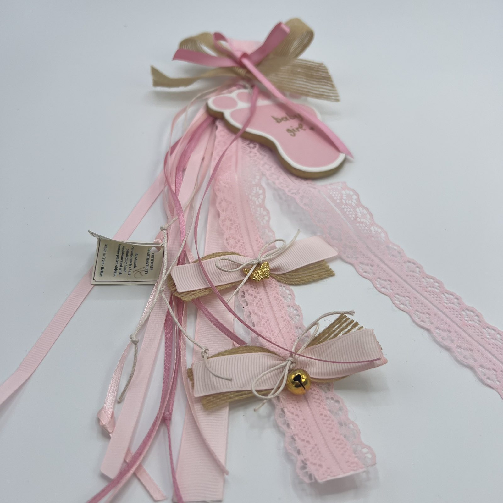 “Baby Girl: Κρεμαστό Γεννητούρι με Πήλινο Πατουσάκι σε Αποχρώσεις Άμμου & Ροζ”